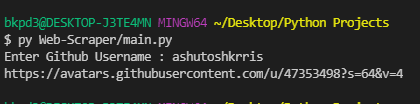 In this project, we'll be using Web Scraping to get the image link of the profile image of a particular Github user. So, what our program is going to do, it's going to ask for a Github username and then it will return the image link of that account.