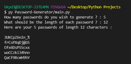 number = int(input("How many passwords do you wish to generate ? : "))